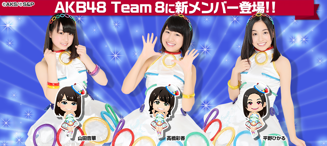 ゲーム『AKB48グループ ついに公式音ゲーでました。』では、6月15日(木)よりTeam 8髙橋彩香、平野ひかる、山田杏華の3名が新たに登場いたしました!