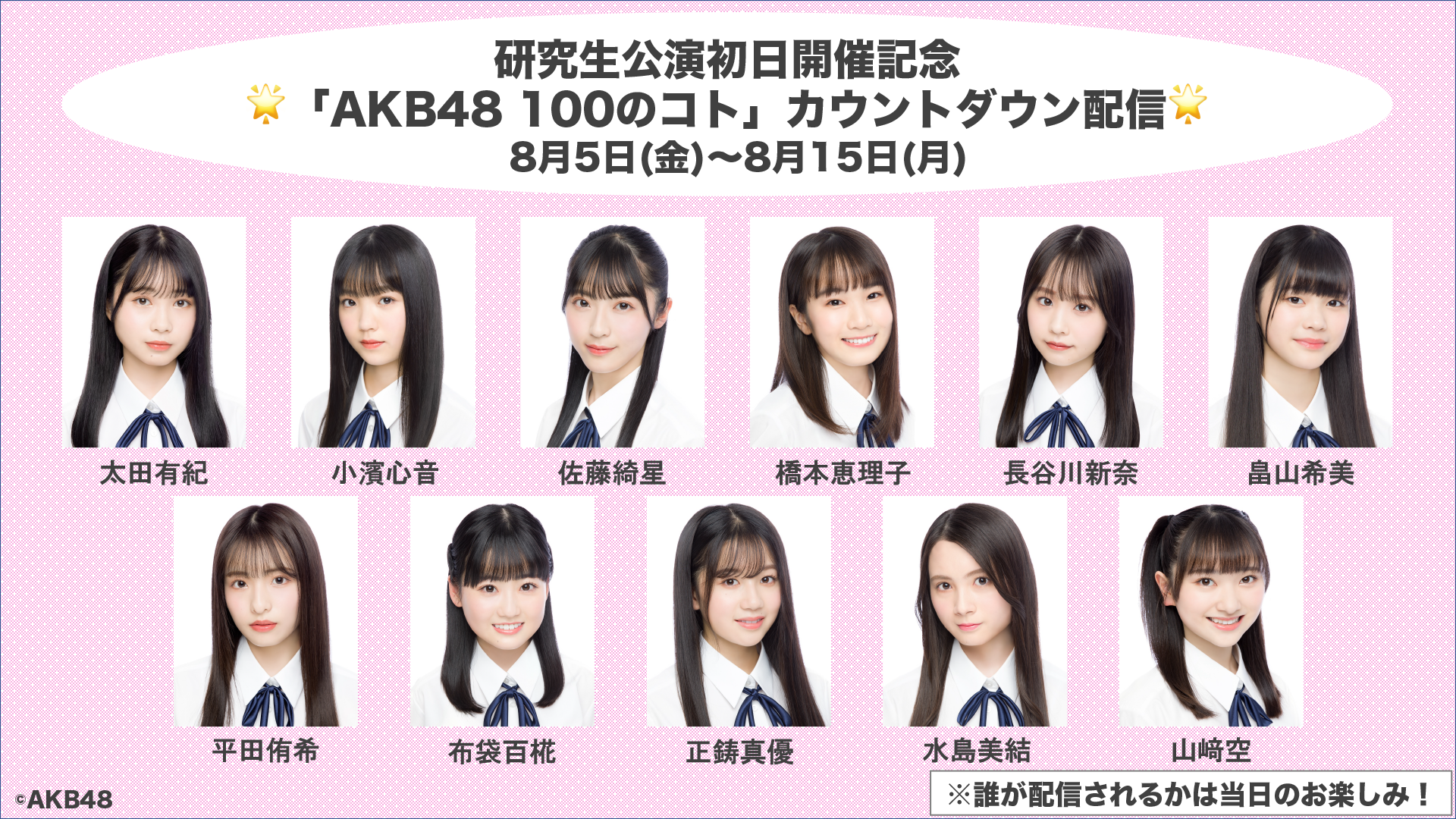 8月16日(火)よりスタートする研究生公演の初日の開催を記念して、本日より映像倉庫初のカウントダウン配信を行います!
