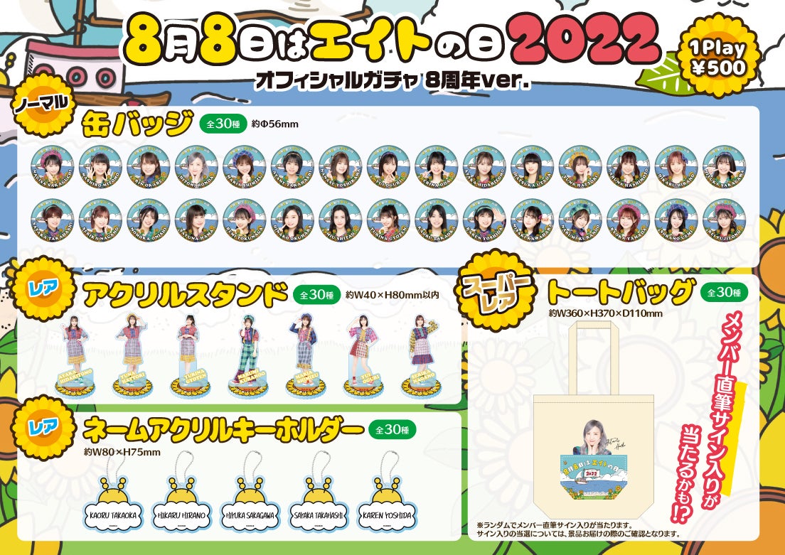 エイトの日2022グッズと生写真もお知らせしましたが、今年は合わせて「team8 エイトの日 2022オフィシャルガチャ8周年ver.」が発売です!