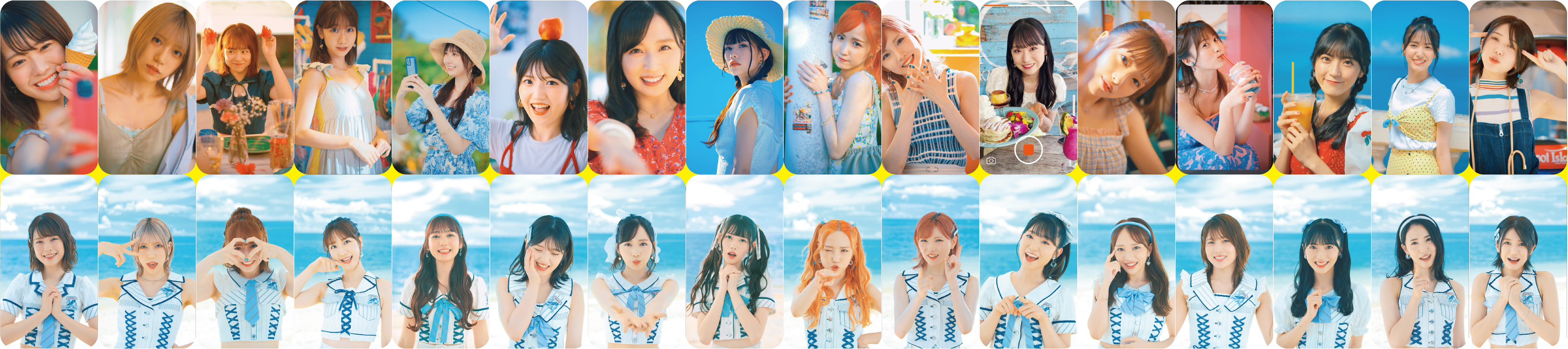沖縄の夏を満喫するメンバーの等身大の姿や、青い空・青い海を背景に眩しい笑顔で踊るメンバーを、スマホ画面いっぱいにお楽しみいただけます!