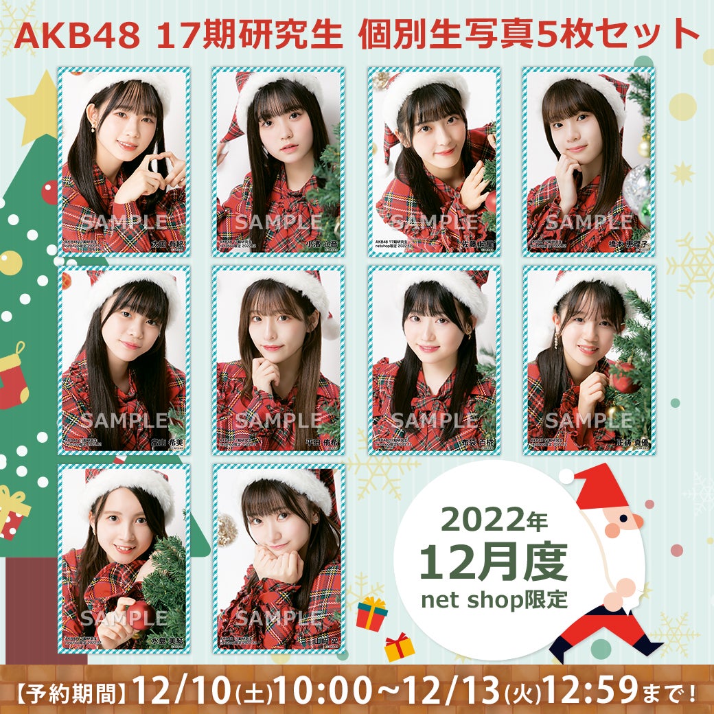 AKB48 17期研究生 2022年12月度 net shop限定個別生写真5枚セット | AKB48 Official ShopAKB48 Official Shopが販売するAKB48 17期研究生 2022年12月度 net shop限定個別生写真5枚セットの販売ページです。AKB48 Official ShopはAKB48の公式通販サイトです。メンバー個別グッズやライブグッズ、生誕グッズ、生写真をはじめ、CDやDVD&Blu-rayも取扱い中!shop.akb48.co.jp