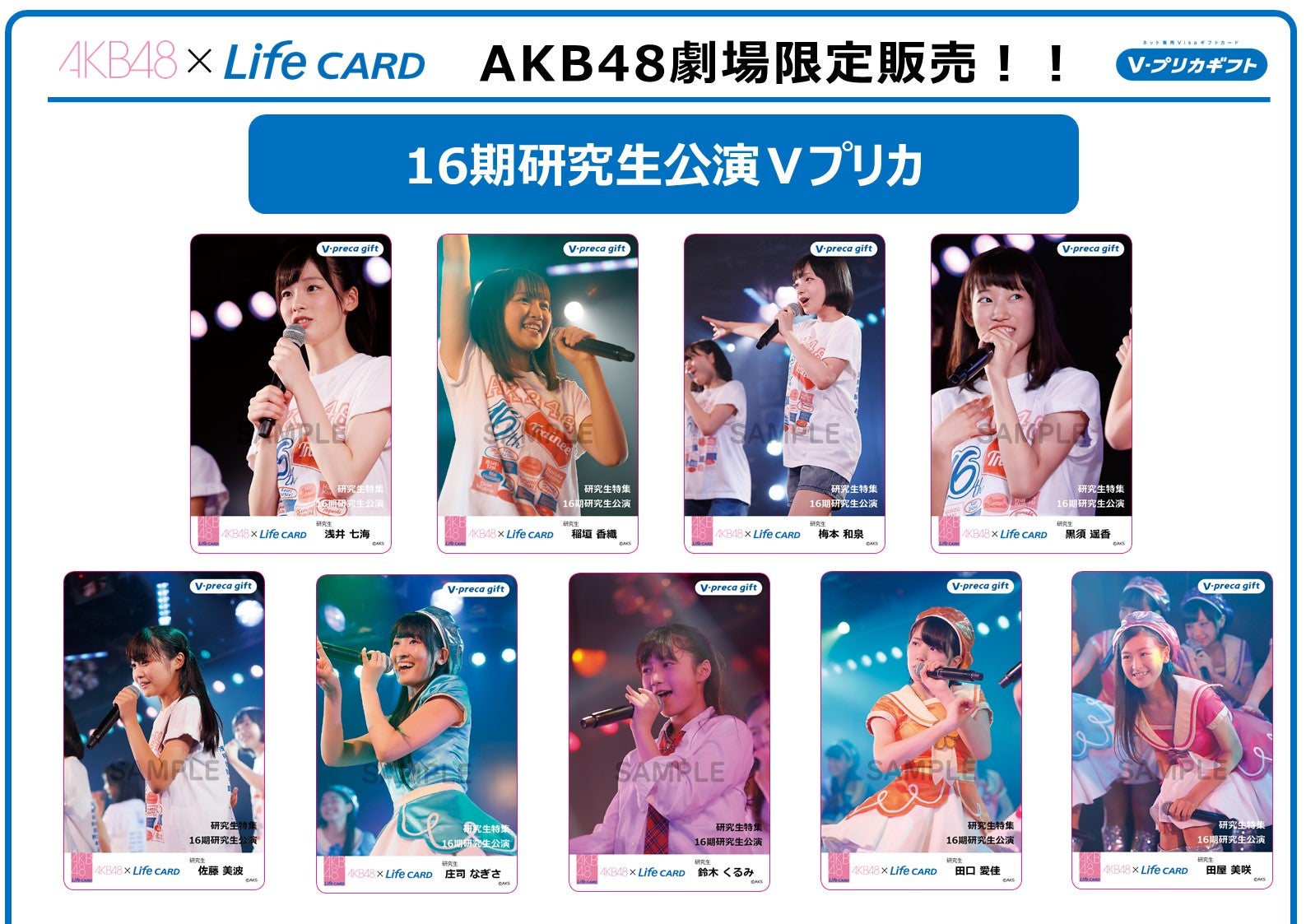 明日(2017年1月28日)から、AKB48劇場にてAKB48×LifeCARDコラボ「AKB48劇場特集Vプリカ」の第九弾の販売を開始します。今回販売するVプリカは「16期研究生」公演のステージ写真素材を使用したデザインとなります。