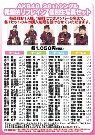 ○38th 希望的リフレイン 個別生写真セット 全90種 販売価格 各1,050円(税込)