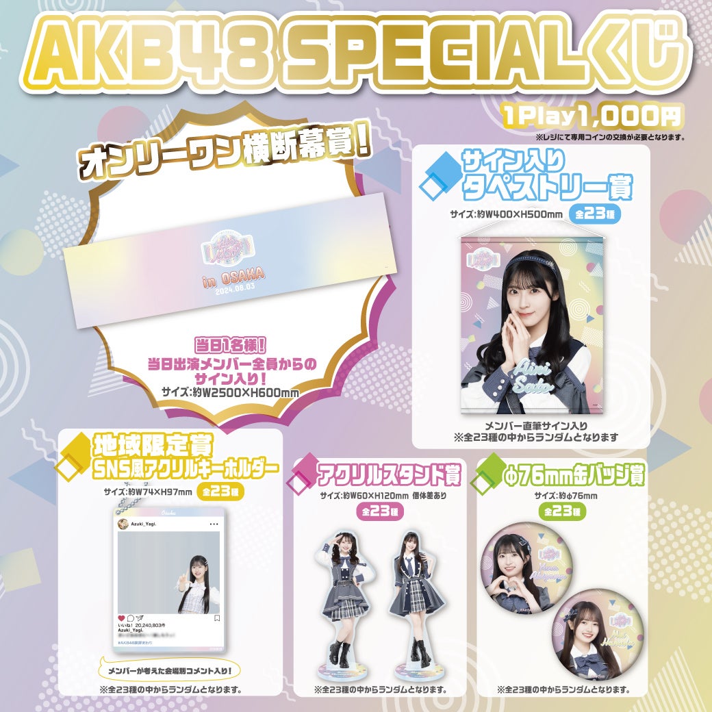 8/3(土)に 大阪府/ GORILLA HALL OSAKAにて開催されます「AKB48 17期生昇格記念LIVE!新メンバー挨拶まわり〜 私たち、AKB48です」にて豪華賞品が当たるAKB48 SPECIALくじを開催させていただきます!