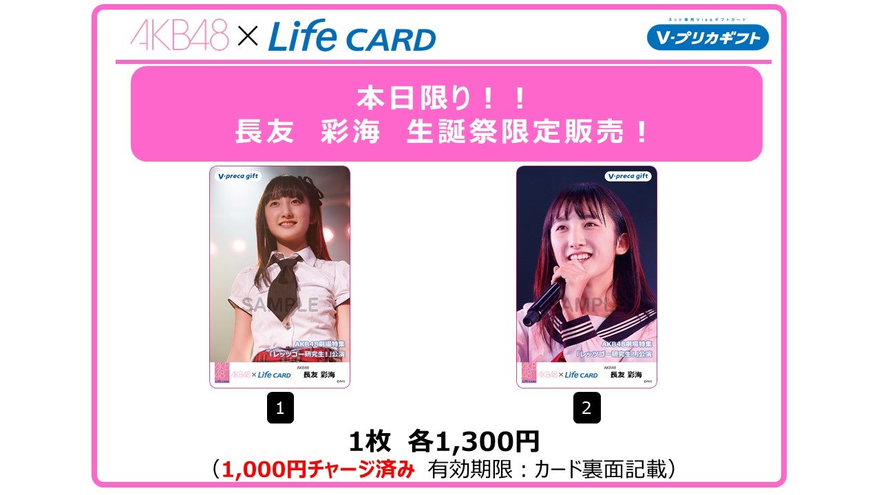 本日(2018年11月2日)長友彩海の生誕祭を記念し、Vプリカを販売致します。