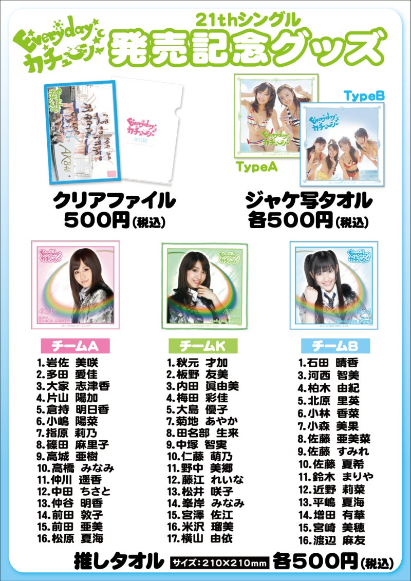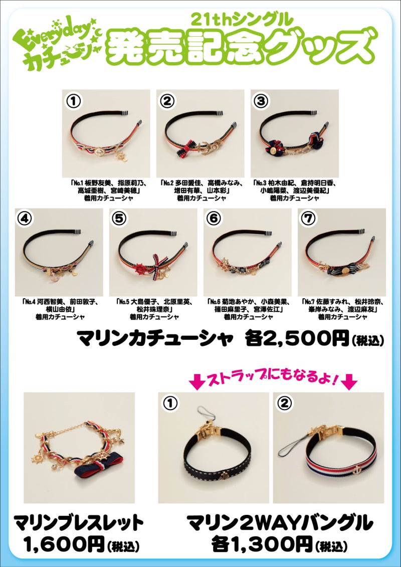 21thシングル「Everyday、カチューシャ」の発売記念グッズをご用意しております。