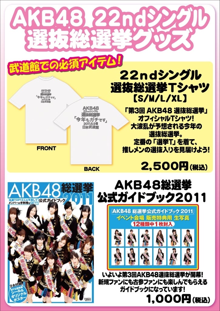 「AKB48 22ndシングル選抜総選挙」日本武道館物販のお知らせ
