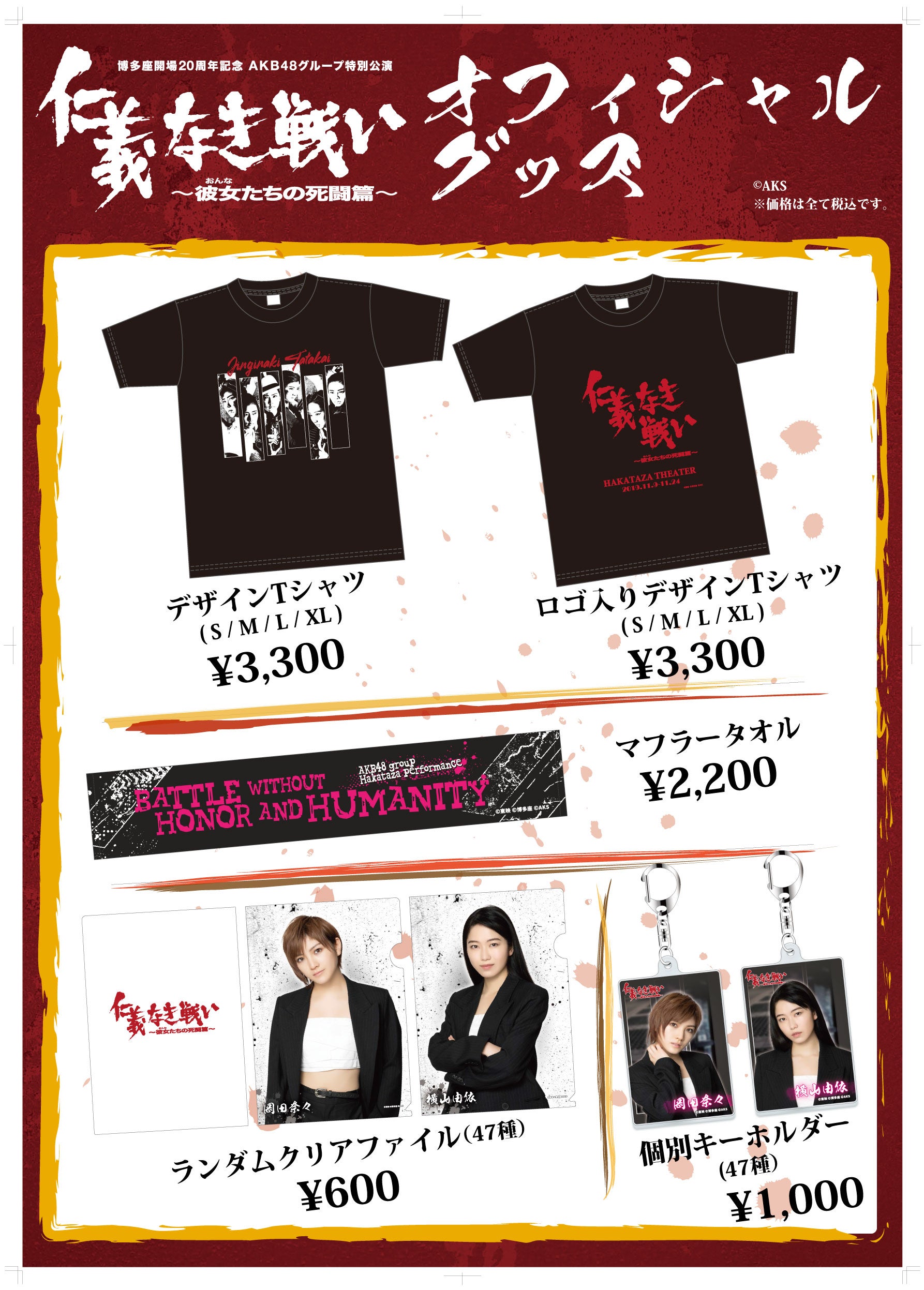 11月9日(土)より博多座で上演される『博多座開場20周年記念 AKB48グループ特別公演「仁義なき戦い/レヴュー48」』のグッズ・生写真の販売詳細をお知らせします。