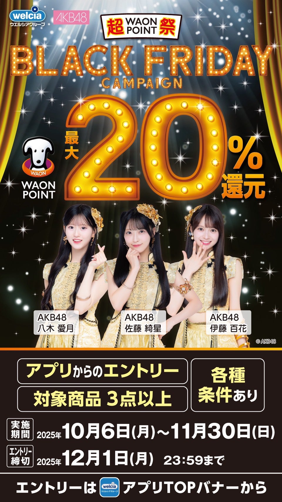 本日10月6日(月)よりスタートした「ウエルシアグループ BLACK FRIDAYキャンペーン」のアンバサダーに佐藤綺星・八木愛月・伊藤百花の3名が就任いたしました!