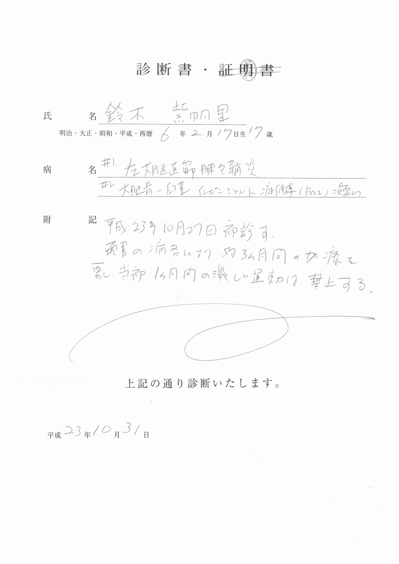 チームBの鈴木紫帆里ですが、足の怪我をいたしまして「左大腿直筋腱々鞘炎」と診断されました。お医者さまからは、1ヶ月間は激しい運動を控える診断がありました。そのため今後1ヶ月は公演をお休みさせて頂きます。