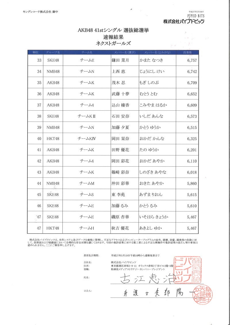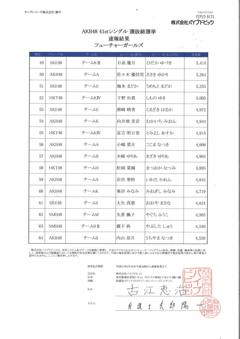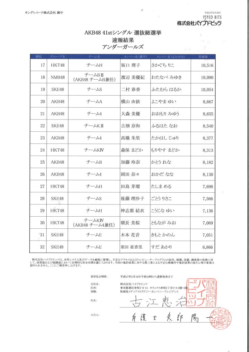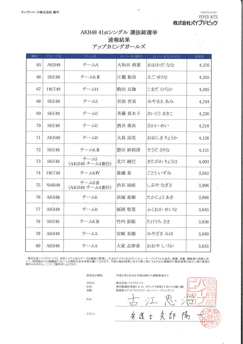 本日のAKB48劇場公演にて「AKB48 41stシングル 選抜総選挙」の速報(1位~80位)を発表させていただきました。