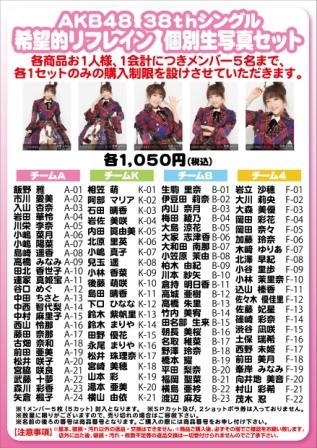 ○AKB48 38thシングル「 希望的リフレイン 」個別生写真 全90種 販売価格各1,050円(税込)