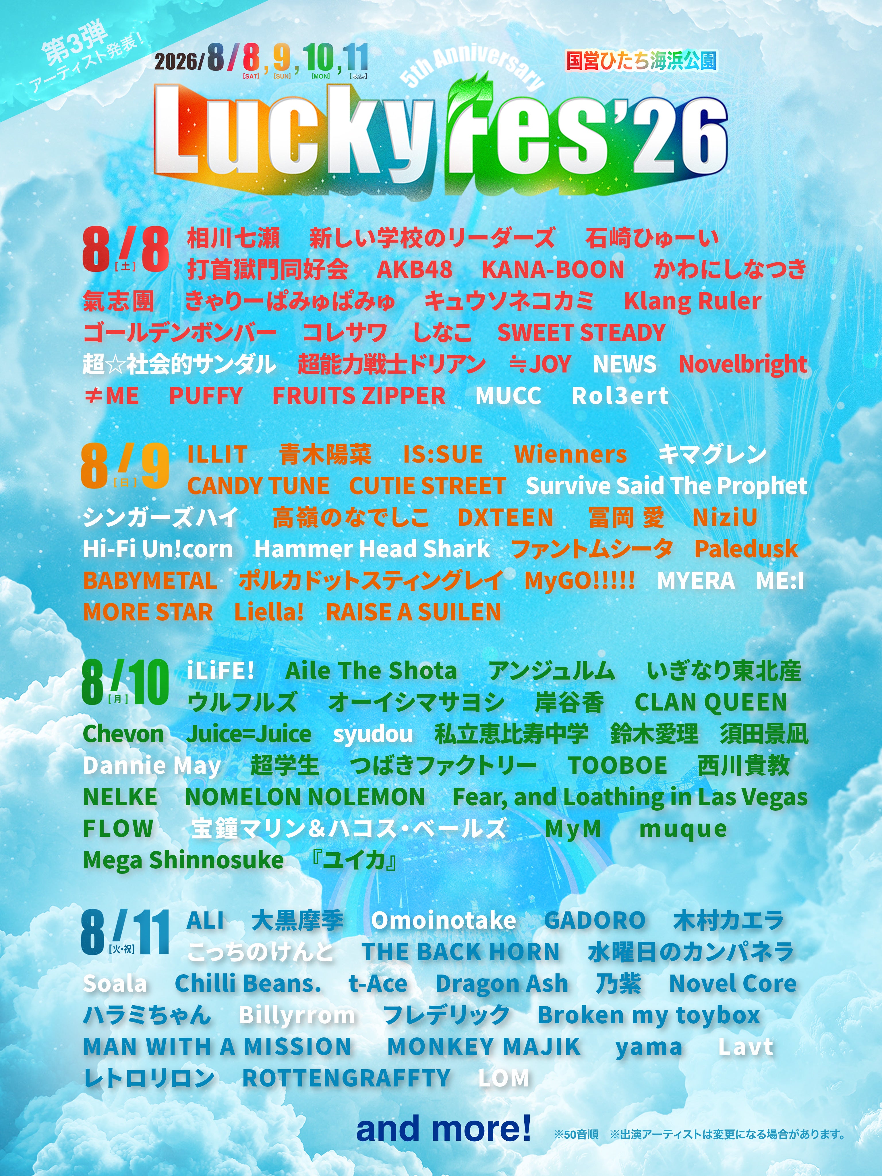 【8/8(土)】『LuckyFes’26』出演メンバー決定!