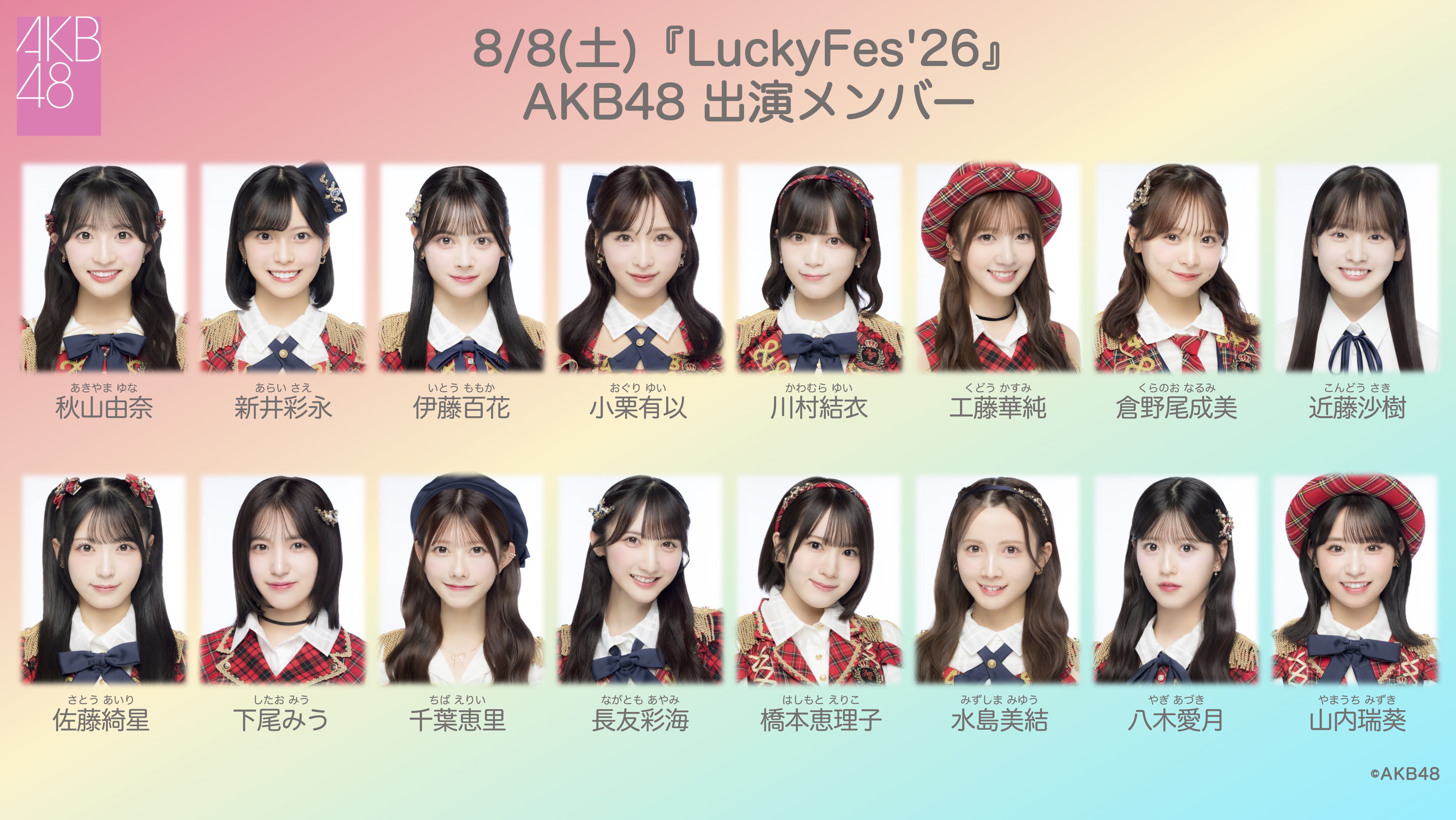 8/8(土)から8/11(火・祝)の4日間に渡り、茨城県ひたちなか市の国営ひたち海浜公園で開催され、AKB48は8/8(土)【DAY1】に出演する『LuckyFes’26』の出演メンバーが決定しました!