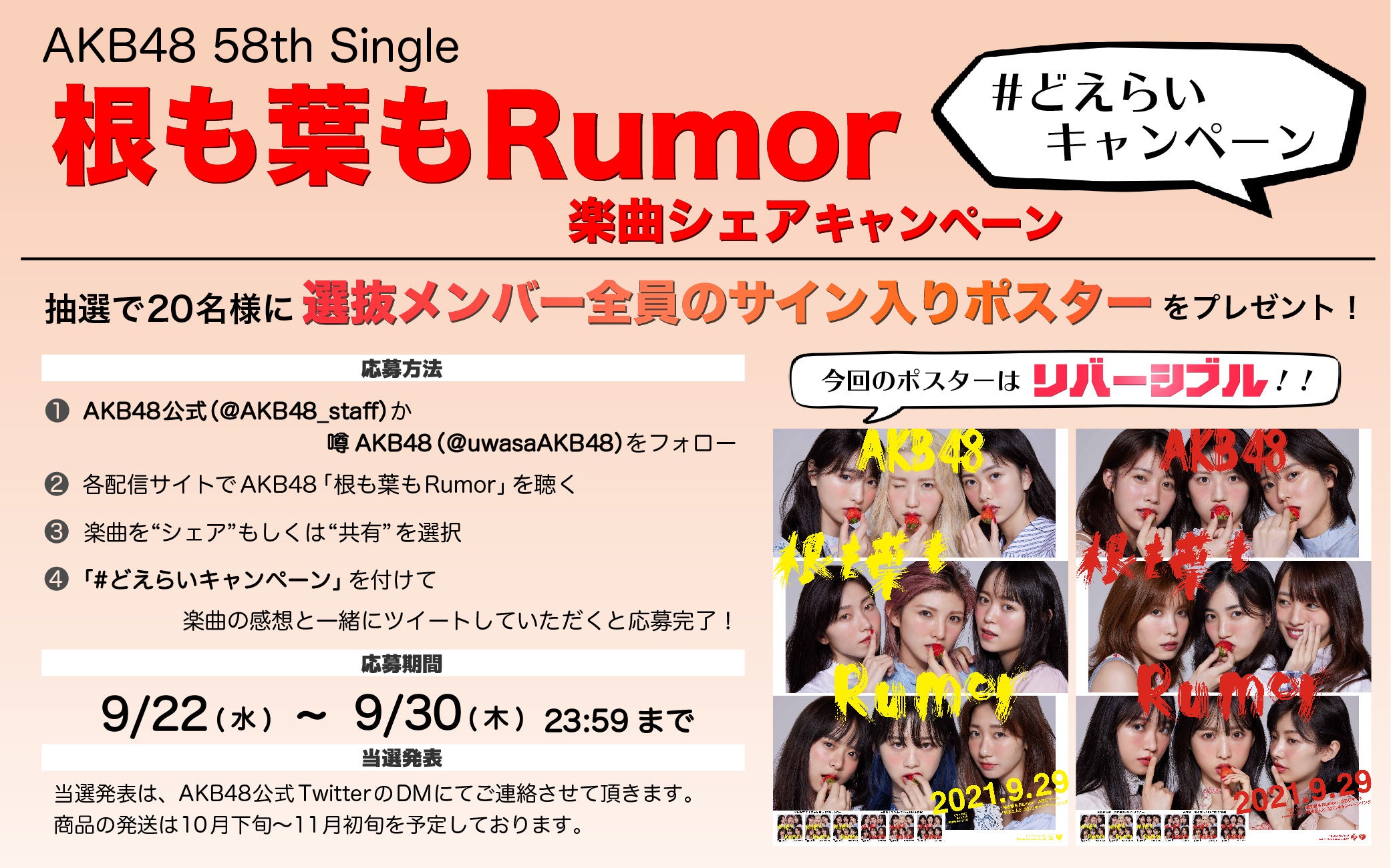 配信開始を記念して、「選抜メンバー全員からのサイン入りポスター」が当たる、楽曲シェアキャンペーンの実施が決定しました!