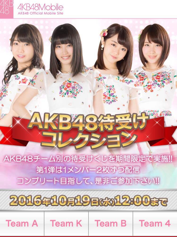 「AKB48 待受けコレクション」は、チームA、チームK、チームB、チーム4のチーム別の「待受けくじ」を期間限定で配信するサービスです。
