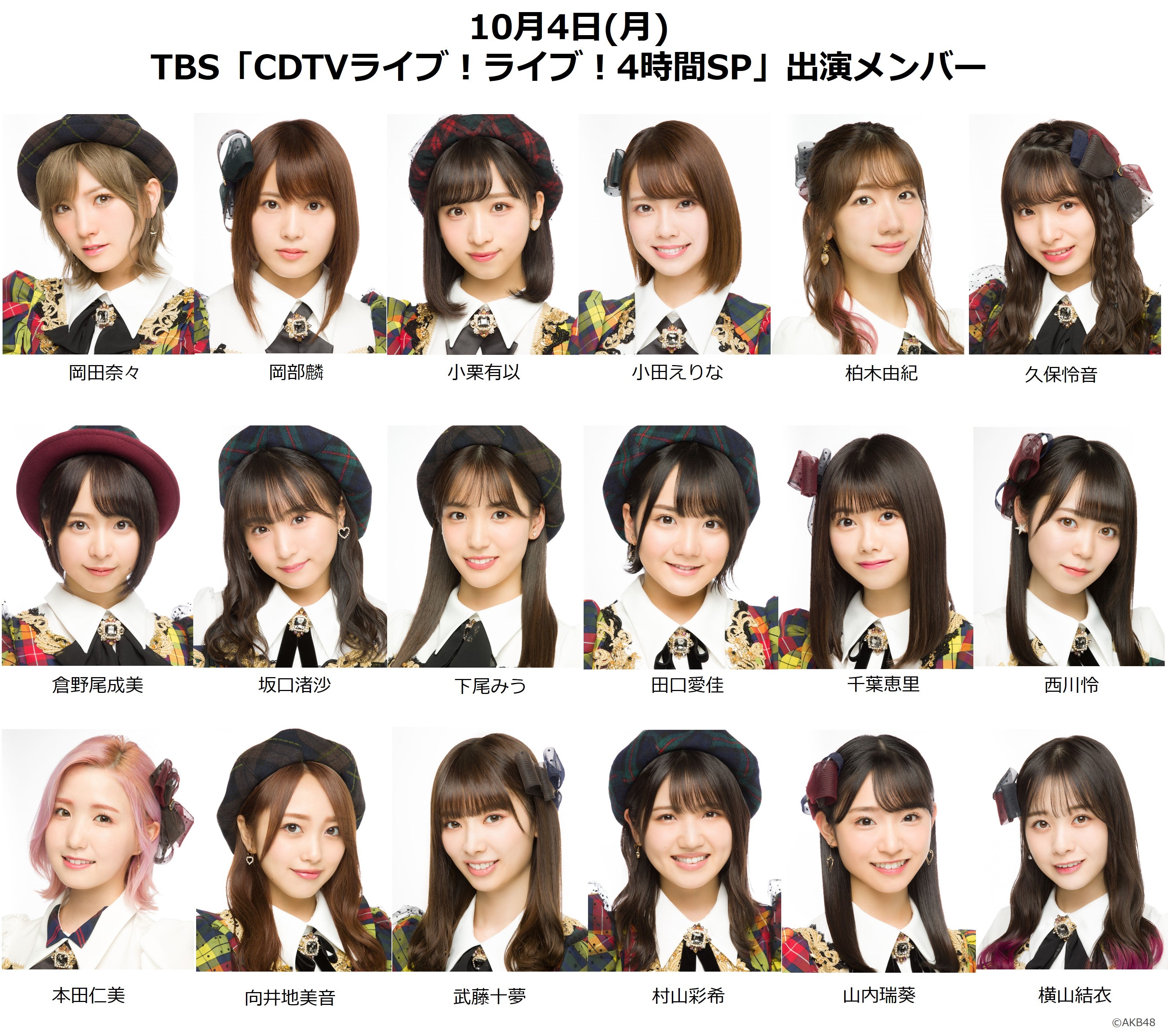 【AKB48】10/4(月)TBS「CDTV ライブ! ライブ!4時間スペシャル」